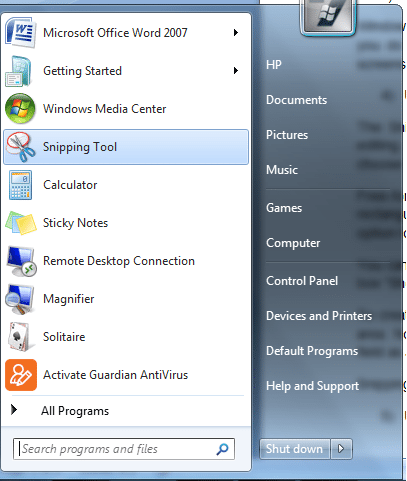 4) Use the Snipping Tool