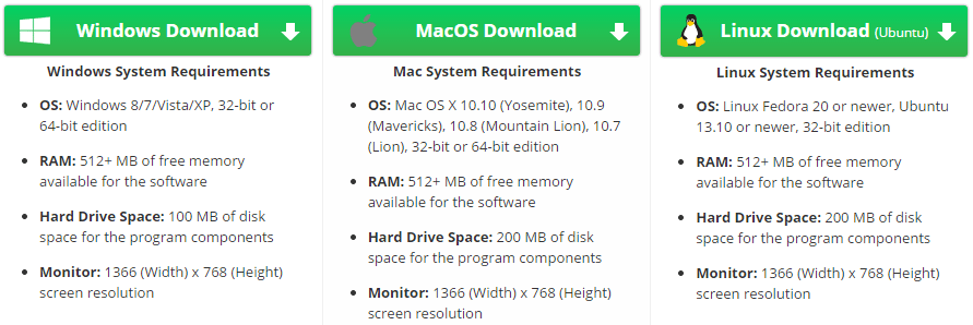 - For Linux: Fedora 20 or newer, Ubuntu 13.10 (x32 edition