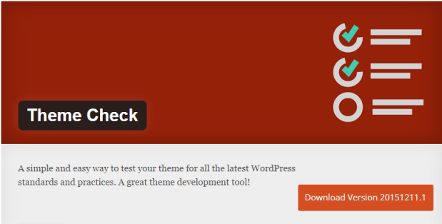 Theme Check is a simple and easy way to test your theme for all latest WordPress standards and practices. The plugin makes sure that the theme is according to the spec with the latest theme review standards. You can also run the same automated testing tools on the theme that WordPress.org uses for theme submissions.