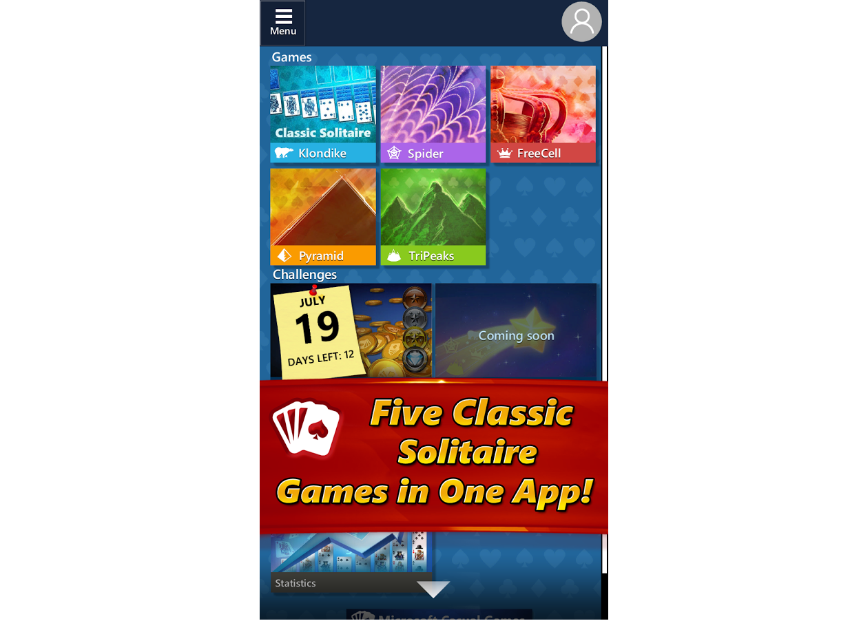 In addition to the five card games, it also includes daily challenges for the games. Then, there’s a Star Club section as well. To play games, you can sign in or can also opt to play as a guest. To sign in, one needs a Microsoft account and signing in earns Xbox Live Achievements and view Leader Boards. The game data gets saved in Microsoft Cloud.