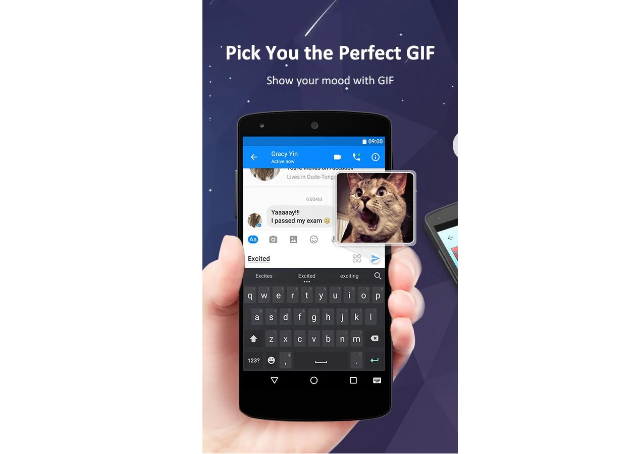 Last but not the least, here comes Go Keyboard Pro app in our compilation of the best GIF keyboard apps. It comes with the coolest keyboard having GIFs to share your true feelings. Here, you will find the perfect GIF for every moment. It offers more than 10000+ colorful themes compatible with emoji keyboard and new themes are added on regular basis.